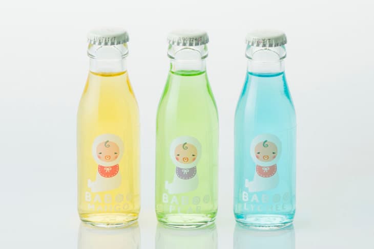 「こどもびいる」の姉妹品としてうぶ声をあげたのは、ミニボトルに入った果実サイダー、その名も「バブー」。飲んでしまうのが、もったいない!という方は、しばらくは眺めて。飲んでしまったら、お花を飾って花瓶にして。おみやげやちょっとしたプレゼントに喜ばれる、バブー。お土産屋さんや雑貨屋さんでも販売されています。